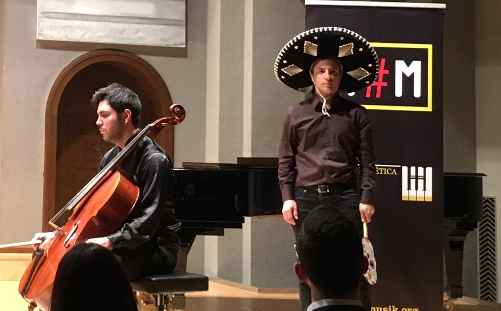 La Velada Hispano-Helvética 2019 tuvo lugar el 21 de marzo en el Forum Yehudi Menuhin de Berna y el 23 de marzo en el Conservatorio de Zúrich. El acto empezó con una pieza de Alberto Ginastera, fascinante en sus variedades, interpretada con pasión por Camille Sublet al piano y Eros Jaca, al chelo.