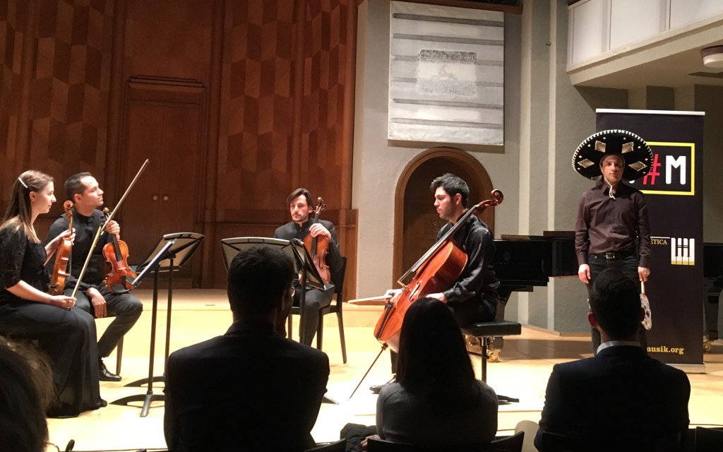 Para finalizar, se leyó el poema de Nancy Wiesmann-Baquero escrito especialmente para la pieza de Astor Piazzolla La muerte del ángel. ¿Cómo imaginarse esto? Tal vez un ángel pueda caer, ¿pero morir? En este arreglo para cuarteto de cuerdas participaron Eros Jaca con el chelo, Flurina Sarott y Nestor Rodríguez con el violín y Javier López Sanz con la viola.