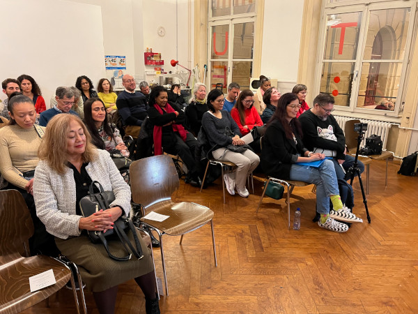 Allí, Letras Bernáculas ha presentado el 15 de noviembre pasado una vez más una selección de textos del trabajo anual del grupo literario de Berna. Fue una noche exitosa en varios aspectos. Tuvimos la sala llena con las personas que nos siguen durante años y un público nuevo y entusiasta. Presentamos poesía de la mejor producción de Mercedes Iturrizaga y Jannet Weeber Brunal; textos que nos llevaron desde lo austral, con Viviana Zepeda y Pedro Méndez, hasta las manipulaciones de familias y de magnates insaciables, con Valentina Truneanu y Nancy Wiesmann-Baquero.
